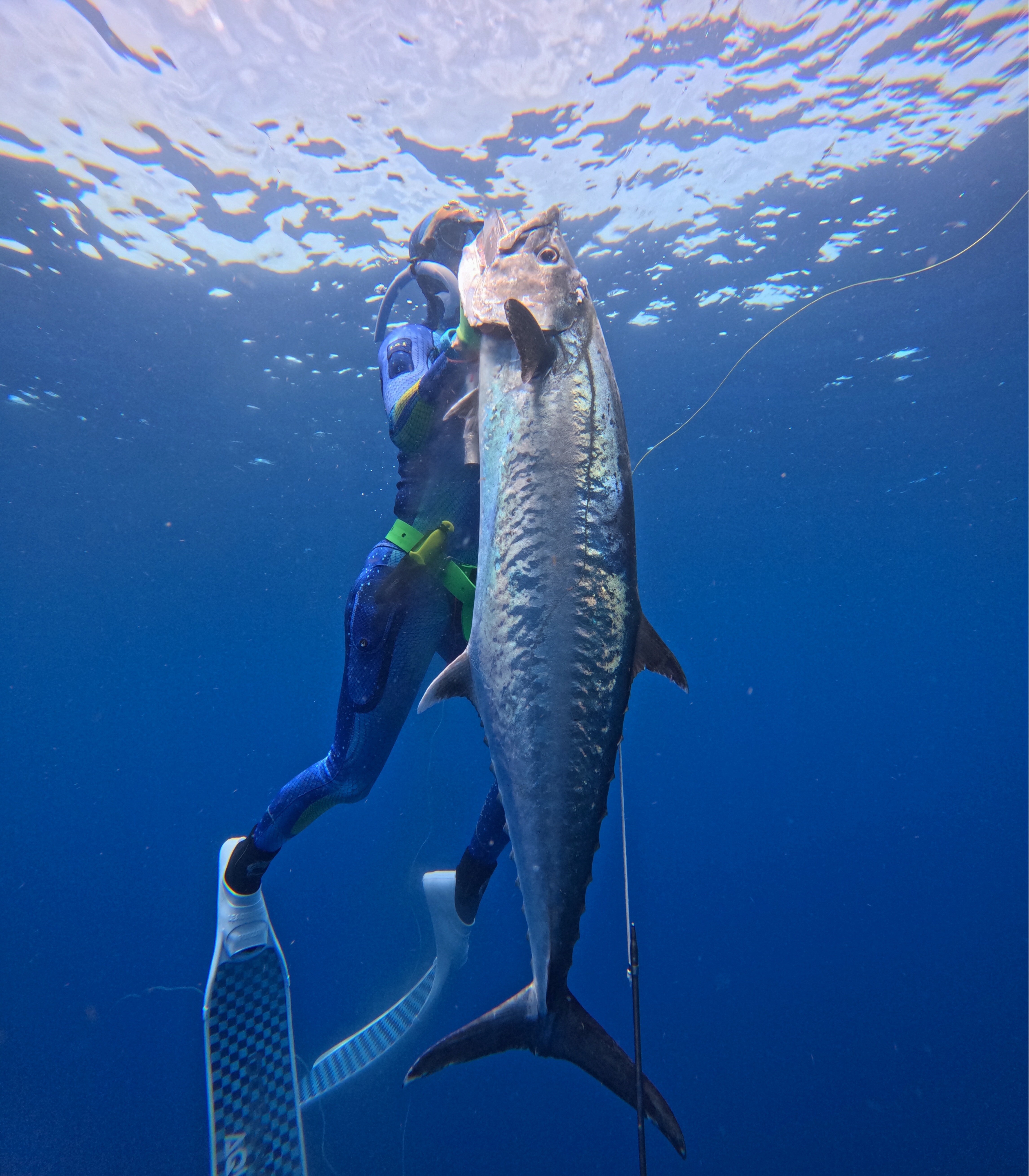 Four years ago, Anna and her husband visited Newport, Rhode Island, for a quick trip. Looking for activities, Anna found a website for spearfishing excursions. Instantly drawn, she tried it—and it changed her life. Spearfishing involves freediving—no oxygen tanks, just breathholding. You pull the trigger on the speargun, secure the fish by hand, and kill it with a knife. “It was like a lightbulb went off,” Anna recalls. The captain told her she was a natural. That was all it took. She fell in love with spearfishing.