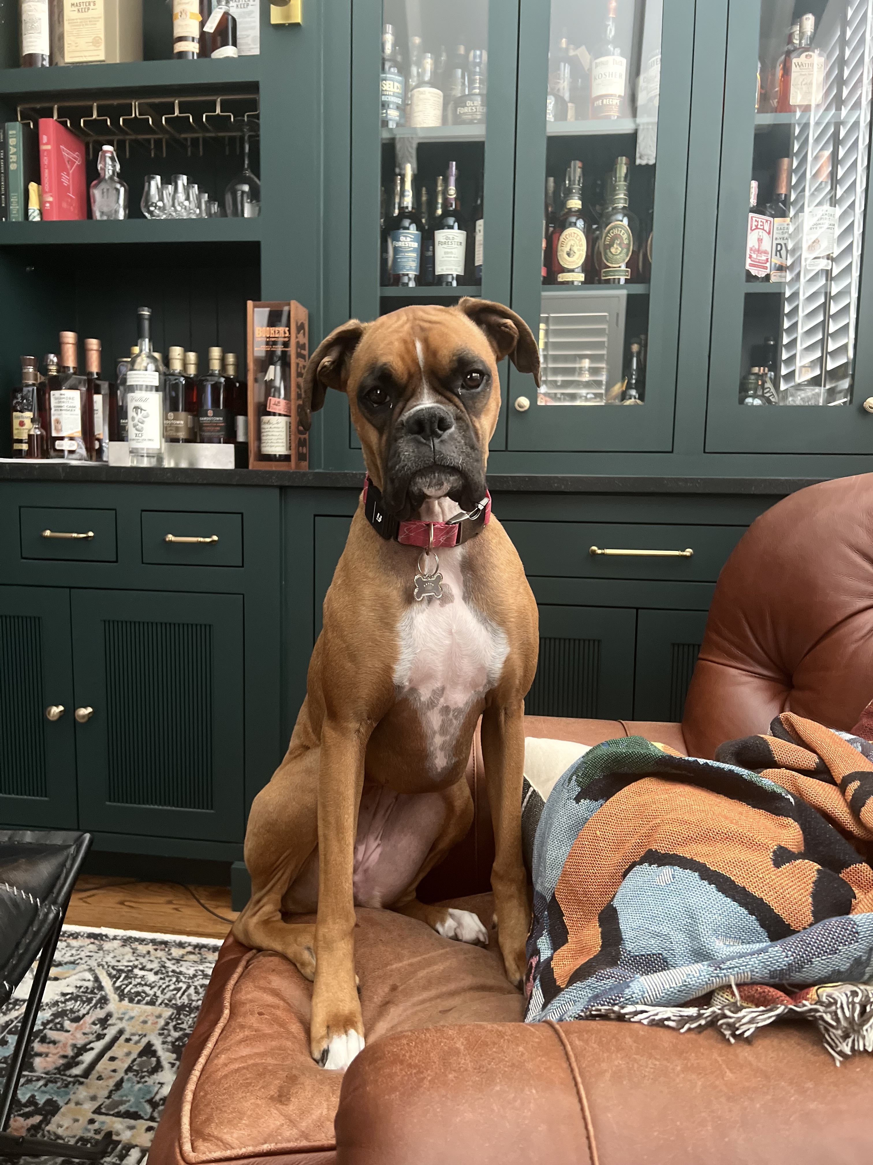 Hello there, my name is Salmon, and I am a Boxer! The Hatchell family wanted a unique and funny name for their Boxer and their kids came up with the name “Salmon.” It was the first name they tossed out, and it stuck. They like to joke that if they get another dog, they’ll name it “Trout” to keep the theme going. I was adopted by the Hatchell family from DFW Boxer Rescue after their first Boxer, Rizzo, passed away. They knew they wanted another Boxer because we Boxers are the perfect mix of energetic and sweet. We don’t shed, we love to cuddle, and our playful spirits fit perfectly with the Hatchell family.